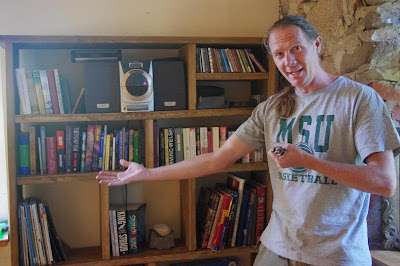 Jem’s project has been a success , and after many many hours measuring and cutting and sanding and drilling and measuring again and drilling some more and, dare I say, “finessing”, a handsome bookcase now adorns the corner of Kūgures living room. What will be his next furniture building project, I wonder?